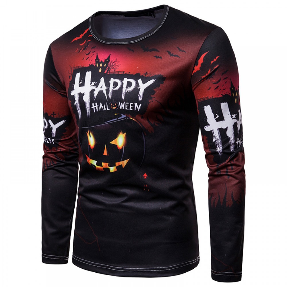 Men's 3D Digital Printing Halloween Series Long Sleeve Round Neck T-Shirt