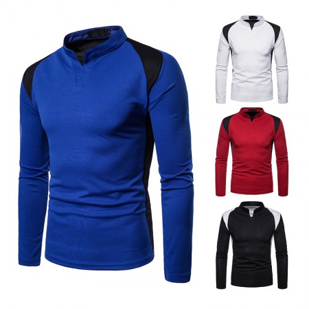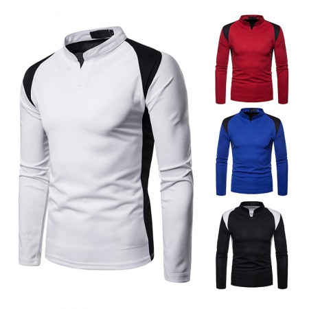 Men's Knitting Personality Pile Collar Mens Casual Slim Long-Sleeved T-Shirt