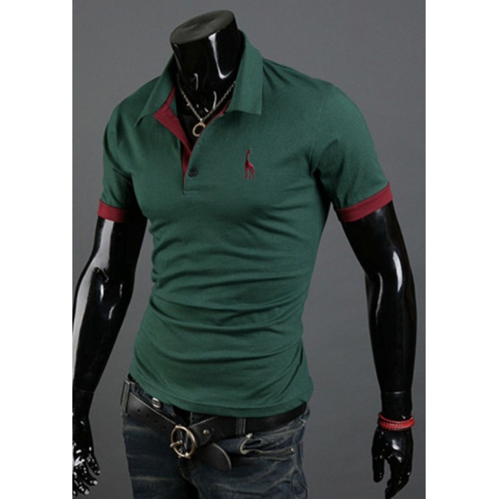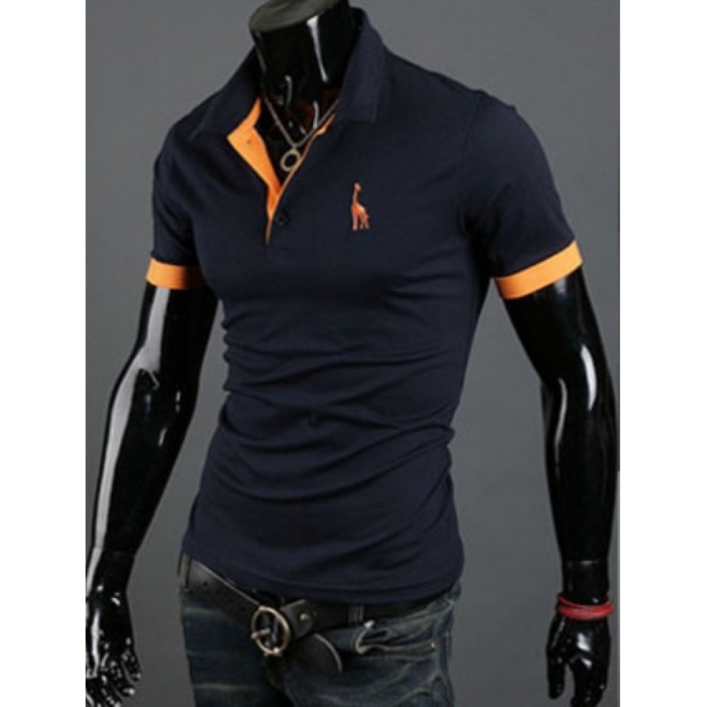 New Short-Sleeved Solid Color Embroidery Men's Slim Casual Loose Short-Sleeved T-Shirt